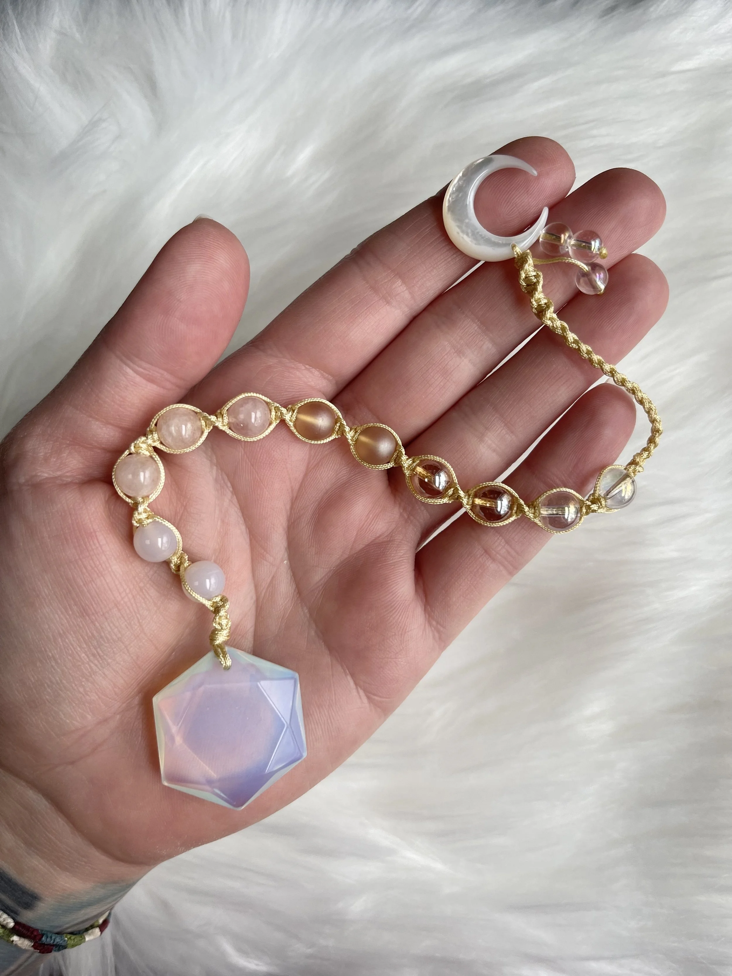 I prefer gemstone and crystal pendulums (are we surprised?? Haha). I find I connect with my pendulums more when they are stone and not metal so those are the pieces that I create myself. Please find something that works and feels good to you. Most pendulums are created with metal chains to hang the pendulum on. I create with nylon cording and have not seen a difference in response between the two different mediums. Again, find what works for you. I actually use a mix of metal and corded pendulums in my own divination practices as for me it’s all about the response and connect to the energy that call me to use anything.